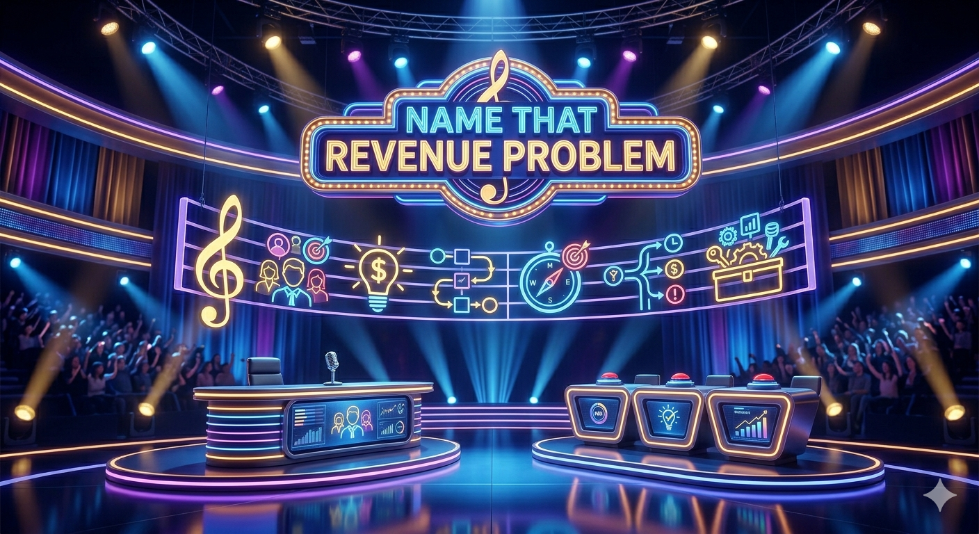 In the classic game show Name That Tune, contestants bet on the minimum number of notes required to identify a song. In the common reality show of Missed Revenue Targets, leadership teams often find themselves hearing a cacophony of reasons and excuses or screechy strategies for conducting a comeback tour.